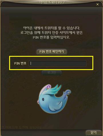 1) 아이온 트위터 실행 후 [PIN 번호 확인하기]를 클릭하면 트위터 홈페이지로 이동합니다.