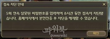 비밀번호 입력 오류로 인해 일정 시간 동안 접속이 차단되는 경우 서비스를 이용하기 위해서는 일정 시간을 대기하거나, 홈페이지를 통해 본인인증 완료 후 비밀번호 재등록을 진행해야 한다.