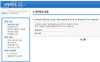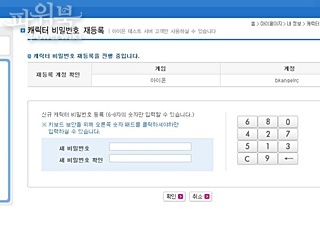 [홈 > 마이페이지 > 내 정보 > 캐릭터 비밀번호 재등록]