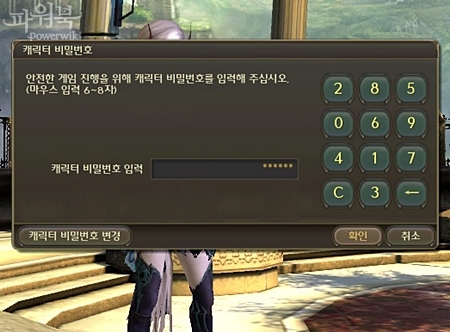 소중한 캐릭터를 안전하게 지키기 위한 비밀번호 입력!