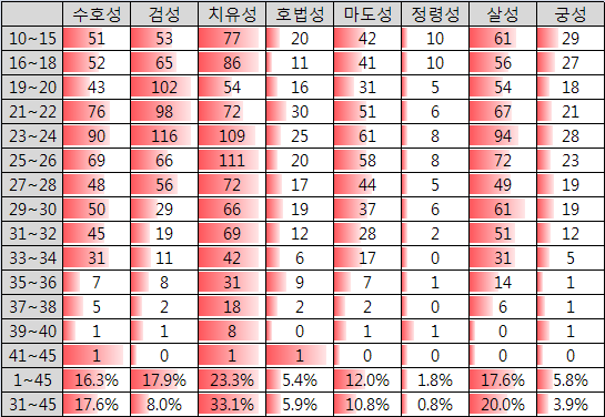 검성은 30렙까진 많은 숫자를 차지하지만(특히 24렙이전)