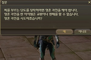 이런 창이 뜨게 되므로, 착용하고 싶다면 '예'를 누르자 |