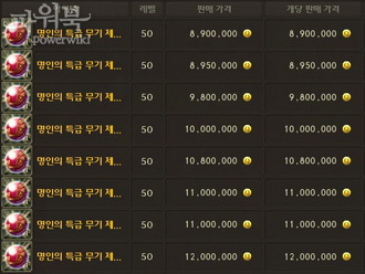 - 달인의 최고급 무기 제련석, 장인의 최고급 무기 제련석, 최고급 무기 제련석