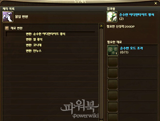 높은 백금 광석을 만들 수 있게 되는 것. 신규 물질 변환의 변환서는 어비스의 각 요새 보급병이 판매하므로, 업데이트 이후 자신의 종족이 차지한