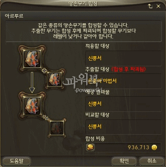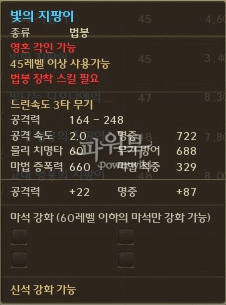 재료가 된다. 기존에 사용하던 무기에 공격속도나 시전속도 옵션이 있다면, 합성할 무기는 해당 옵션이 없는 저렴한 아이템으로 선택하는 것도 좋다.