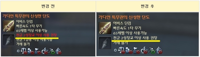 1. 특무관/특전관 아이템 툴팁에서 사용 권장 문구가 붉은색으로 출력되는 현상을 수정하였습니다.
