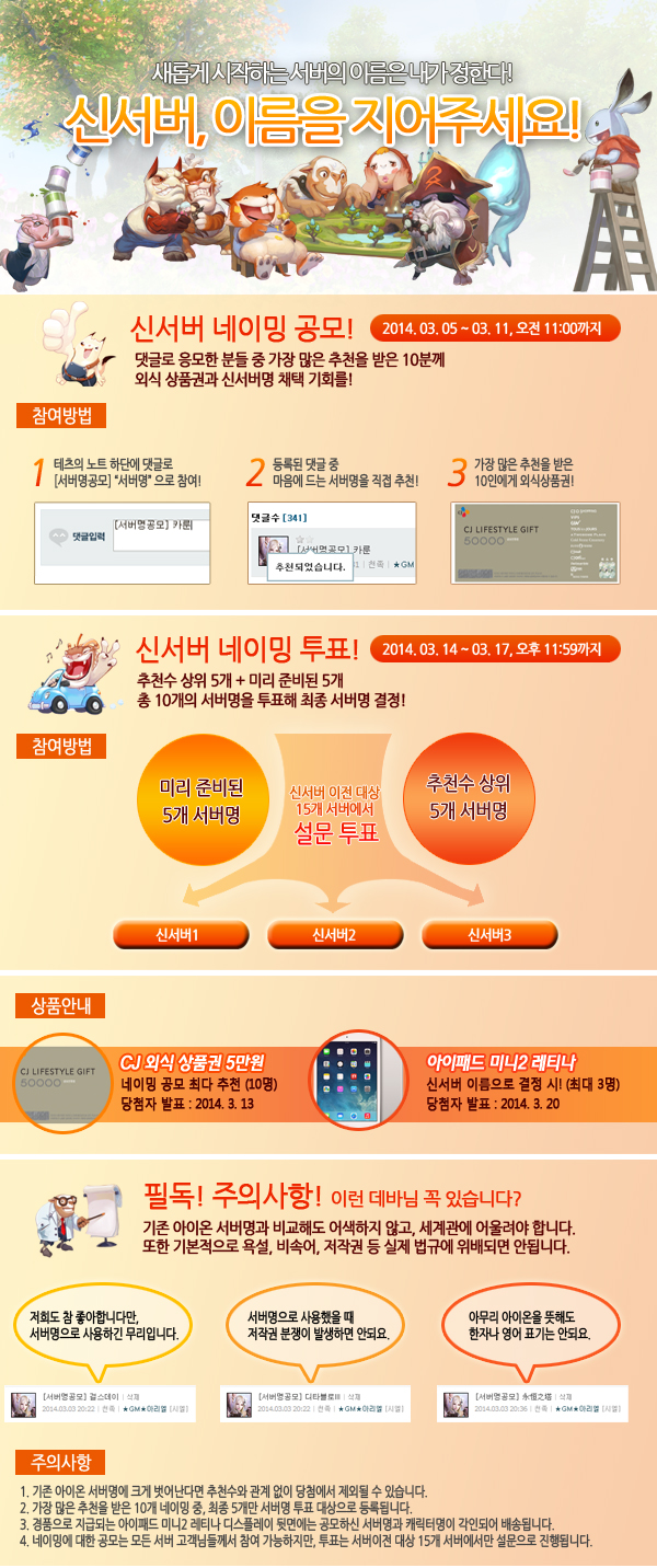 2. 아이온 세계관과 어울리지 않는 서버명의 경우 추천수와 상관 없이 당첨에서 제외될 수 있습니다.