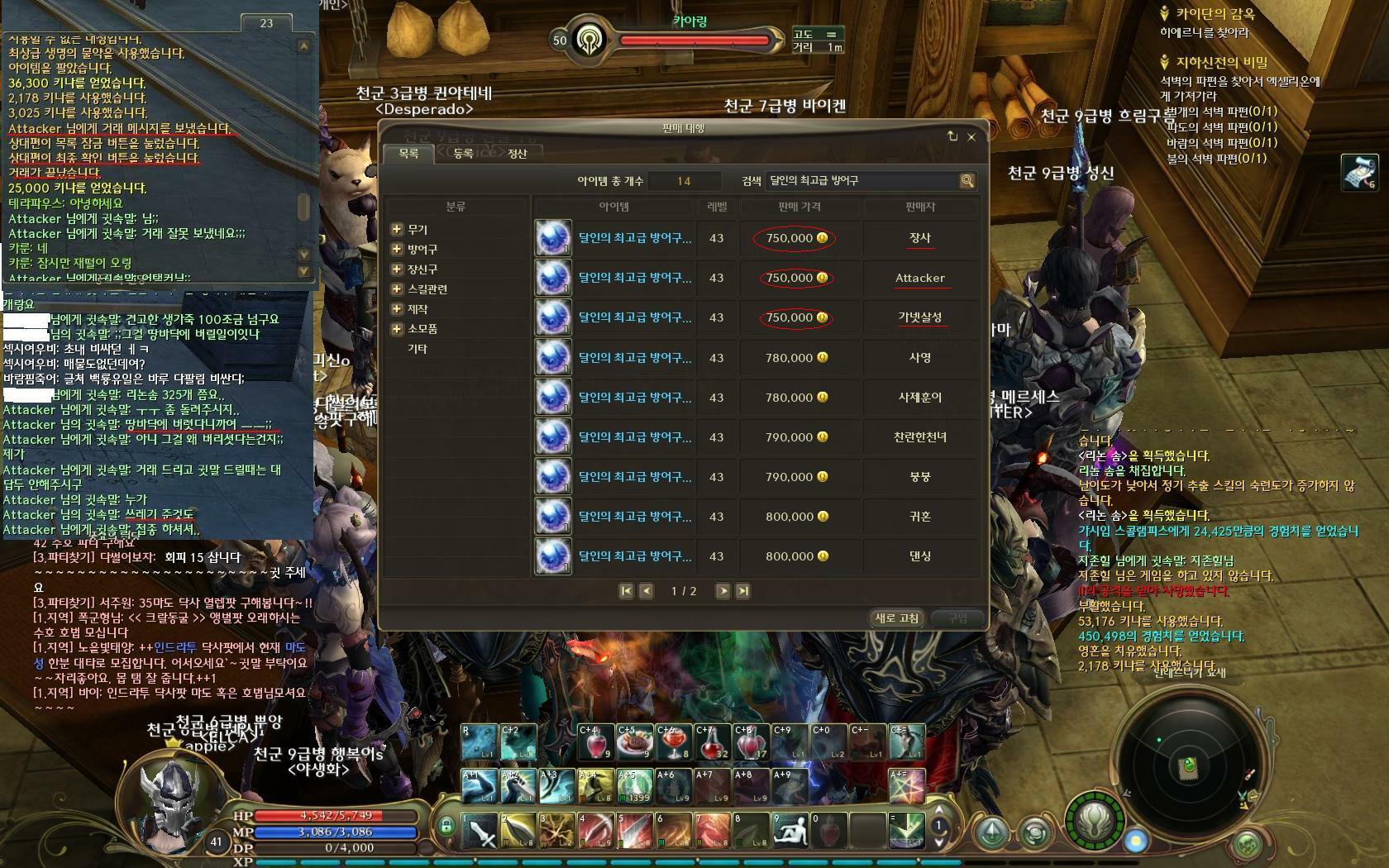 시엘 서버 여러분들.. 천족 시세로 계산했을때 200만 키나 정도 밖에 안되는걸루 양심을 팔진 맙시다..