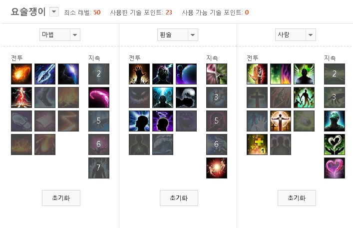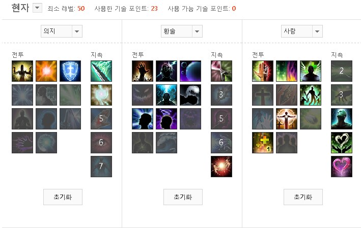 저기서 선택사항인 스킬은 마법 사거리 증가, 각성, 정신 수양 정도가 되겠네요.