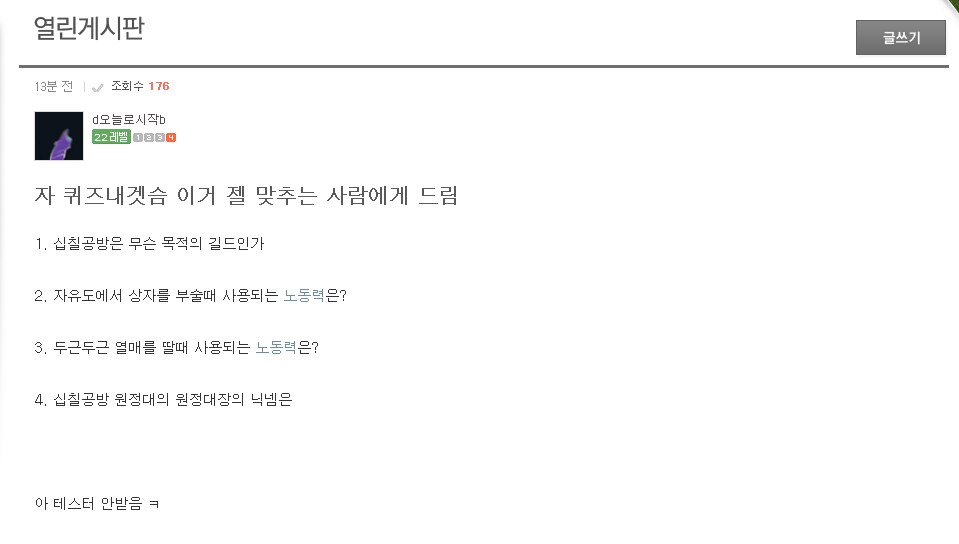 그러자 4번문제의 주인공인 원정대장이 글을 쓰는데 (4. 십칠공방 원정대의 원정대장의 닉넴은 )