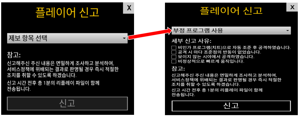 ■ 불법 프로그램 사용자 신고 방법 (데스 캠 또는 리플레이 확인 후 신고)
