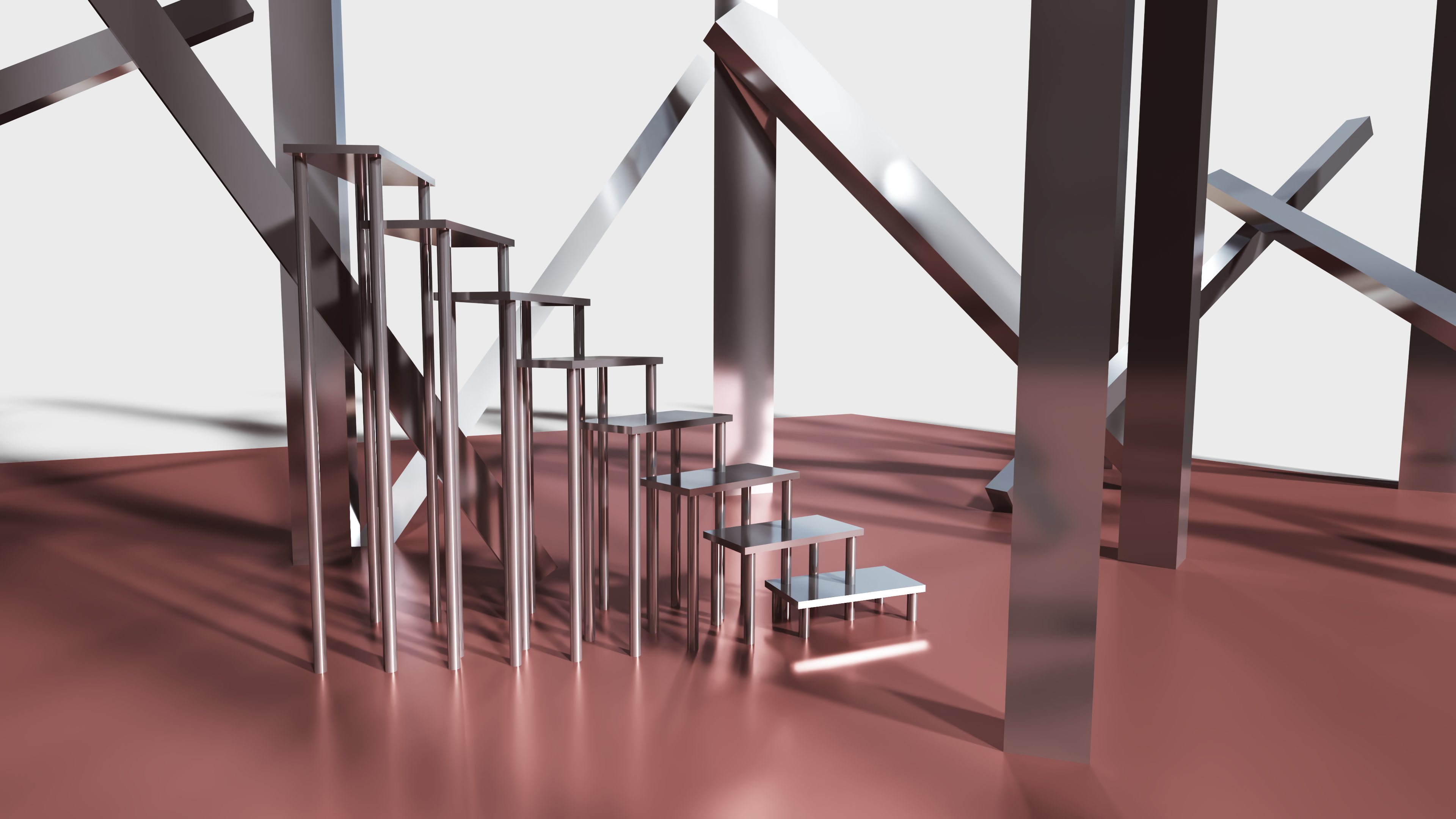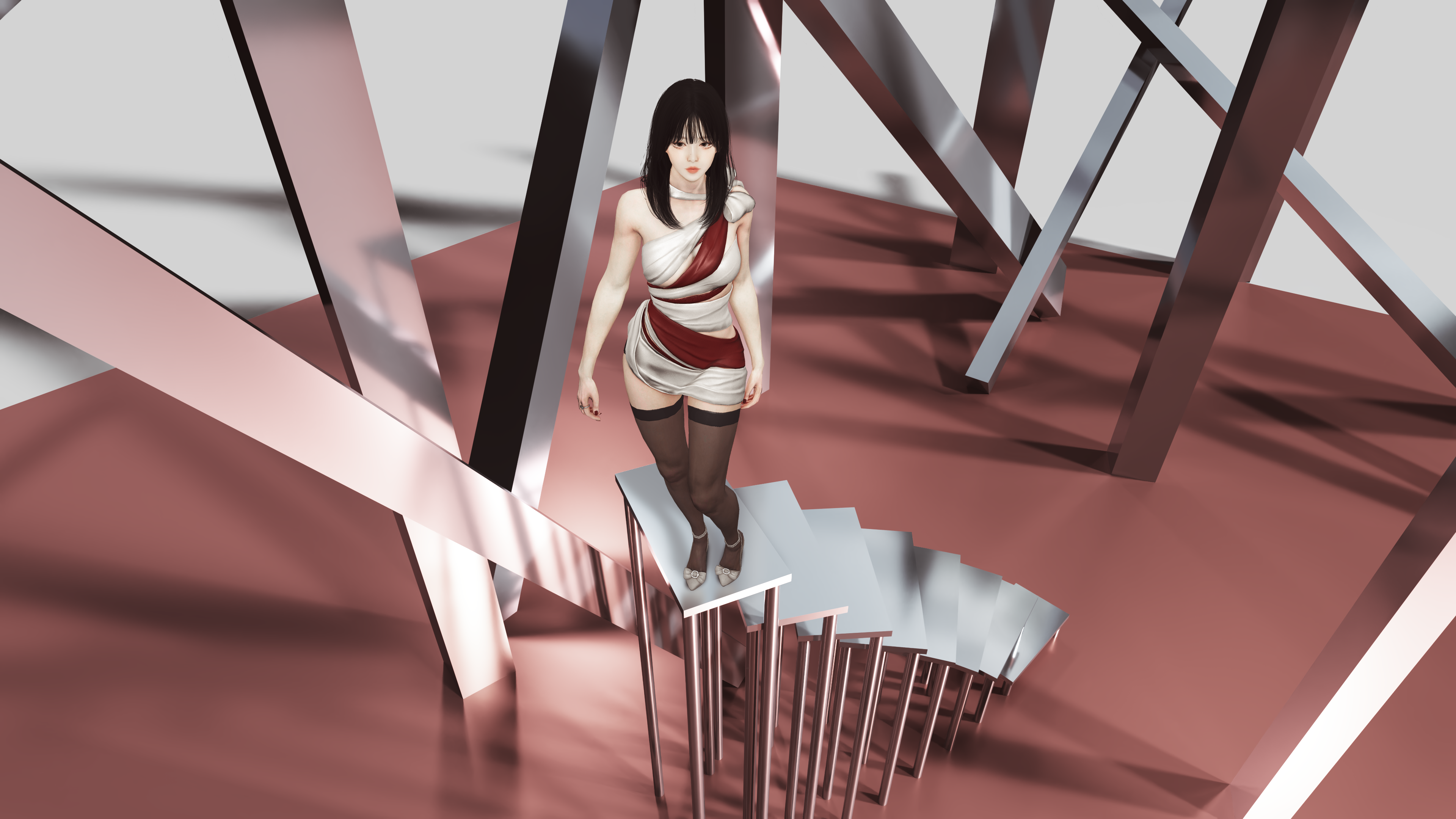 다른 콘셉트 사진 세트 역시 어도비 디멘션에서 제작했지만, 이번에는 단순한 프로그램 내 기본 도형만을 사용해 세트를 구성했습니다. 이는 블랙핑크의 예전 콘셉트 사진에서 영감을 받았습니다.
