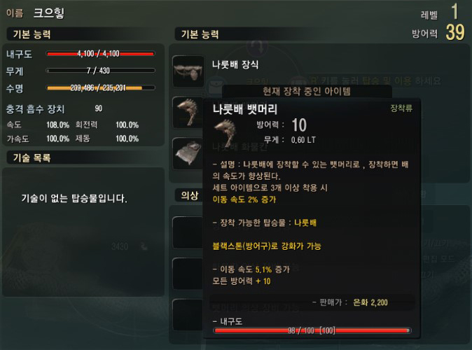 그리고, 나룻배 장착 아이템은 탈부착이 가능하며 수리도 가능합니다.
