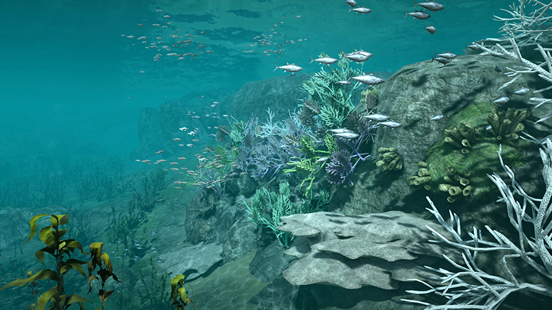 대륙 연안 지역에는 해저 동굴과 산호 등이 다채롭게 발견되어 모험가들의 탐험을 재촉합니다.