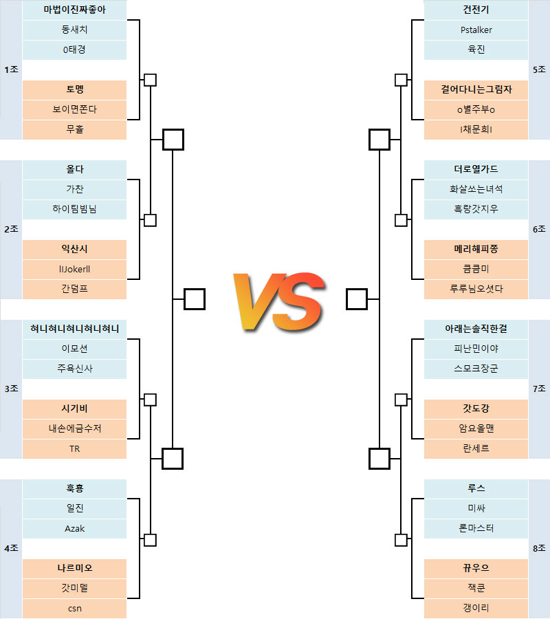 - 1~4차 예선전을 통해 본선 대진표가 결정되었습니다.