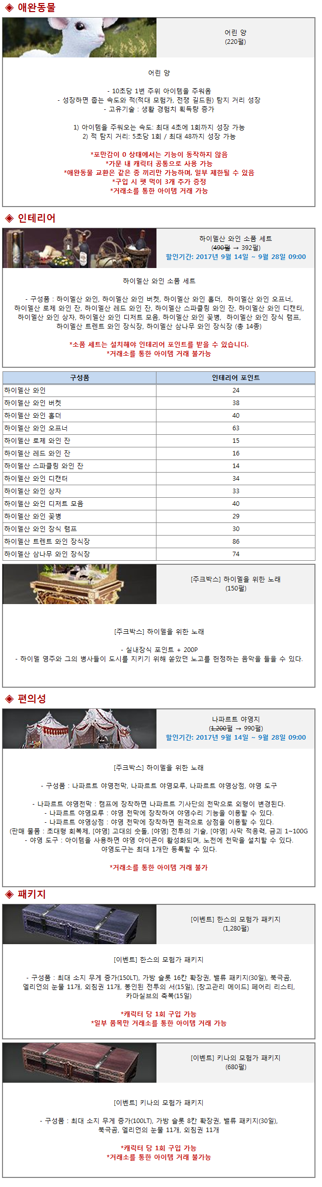 2017년 9월 14일(목) 펄 상점에 출시되는 상품 및 이벤트 내용을 안내하여 드립니다.