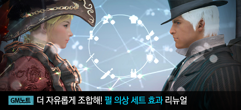 오늘 GM노트에서는 곧 업데이트 예정인 펄 의상 세트 효과 리뉴얼에 대해 안내해 드리려고 합니다.