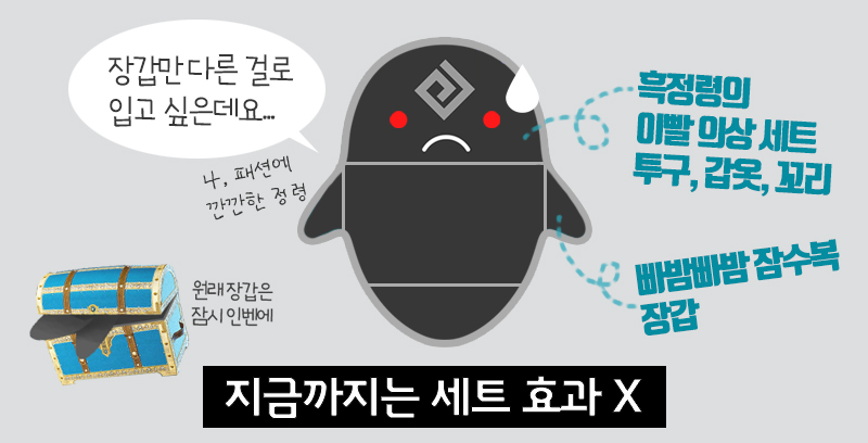 반대로 세트 효과를 버려가면서까지 내 캐릭터의 룩은 포기할 수 없을 때도 있겠죠?