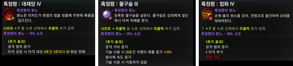 ● 대재앙, 물구슬, 업화 기술에 흑정령 분노 기술이 확장되었습니다.