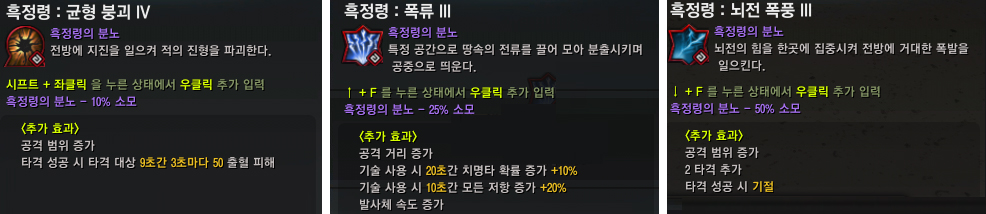 ● 균형 붕괴, 폭류, 뇌전폭풍 기술에 흑정령 분노 기술이 확장되었습니다.