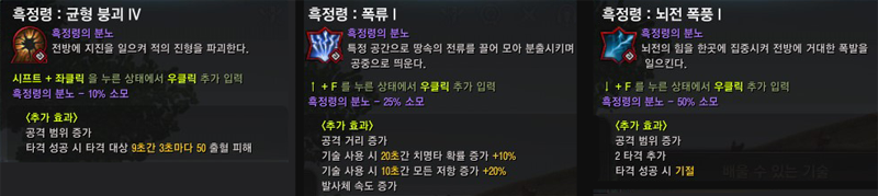 ● 흑정령의 분노를 균형 붕괴, 폭류, 뇌전폭풍 기술에도 사용할 수 있도록 확장되었습니다.