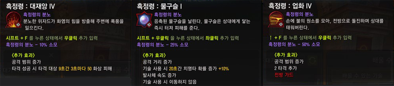 ● 흑정령의 분노를 대재앙, 물구슬, 업화 기술에도 사용할 수 있도록 확장되었습니다.