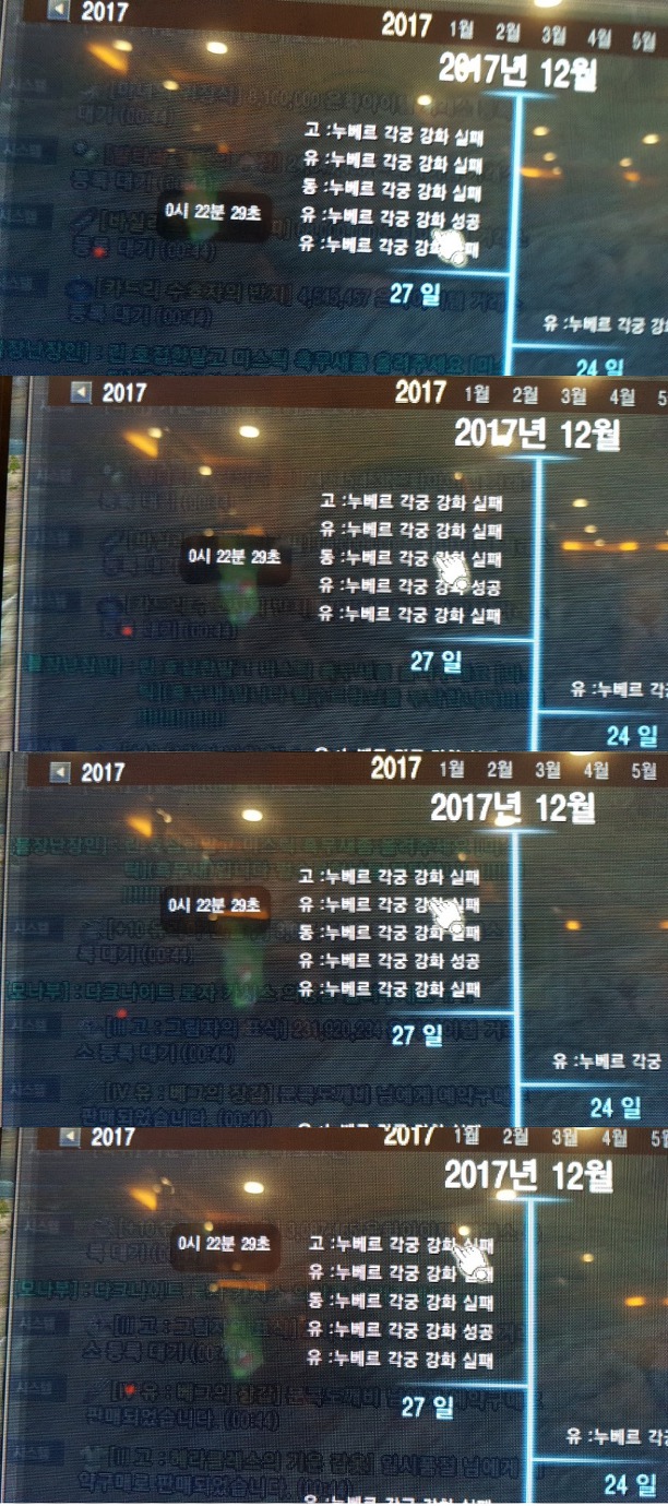 갑자기 쏟아지는 강화로그.... 유누베르 성공을 보았지만 그뒤로 알수 없는 동누베르실패 유누베르 실패 고누베르 실패가 연달아 뜨는것이 였습니다.