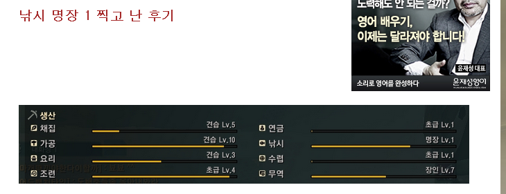 나도지금 명장이야 생활경험치 대부분 전문을 찍었어