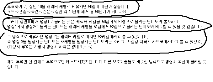 근데 장인 10에서 명장 1로올라가는건 50랩에서 51랩찍는 경험치 요구량이랑 거의비슷할꺼야