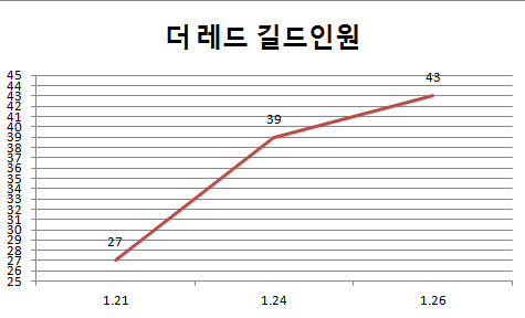 1.26은 금일자 데이터이며 공성에 인원이 약간 늘어난 것은 인원모집이 아니라 다른 작은 길드에 분산된 인원을 본 길드에 추가 시켰기에 다소 늘어났던 것이며 연이은 패배와 추락하는 이미지 속에서도 길드원 숫자가 유지되는것이 신기할 정도.