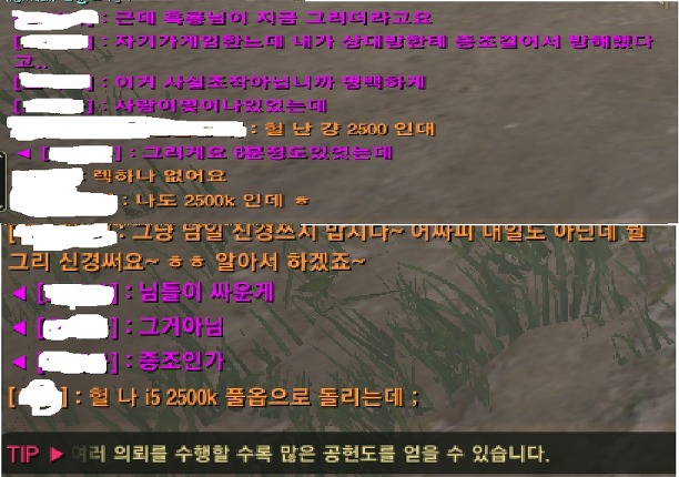 애당초 서로 이런대화중에 다보이는 월드채팅으로 길드원모집을 하고있는건 딱봐도 사람개무시아닙니까?