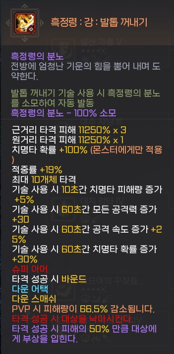 무적 이동거리 증가 / 공격 범위 증가 / 공격 속도 버프 수치 증가 및 공격 속도 버프 지속시간 20초로 증가 / 공격 동작에도 몬스터 상대 무적 추가(무적 지속 시간 증가)