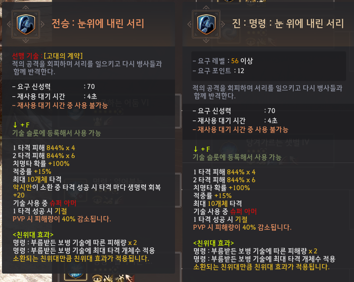 전승:크라툼의 방호 사용 후 혹한의 어둠 첫번째 사용시