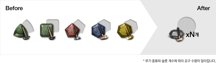 무기의 종류와 생성되어있는 보석 슬롯 개수에 따라, 일정 수량의 [보석 망치]를 사용하면,