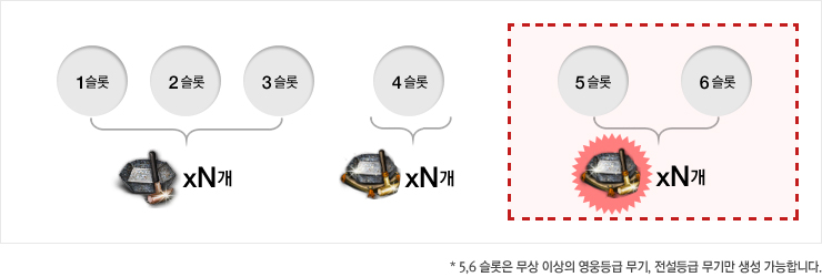 단, 5/6번째 슬롯을 생성하기 위해서는 더 특별한 슬롯 생성 아이템, [빛나는 보석 망치]가 일정 수량 필요합니다.