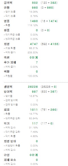 위에는 공격과 주로 관련된 스텟들이네요 그러고보니?