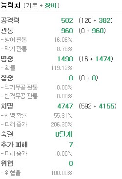 -치명 확률: 내 케릭터가 몹등을 칠 때 치명타를 때릴 확률 이라는 겁니다 말그대로