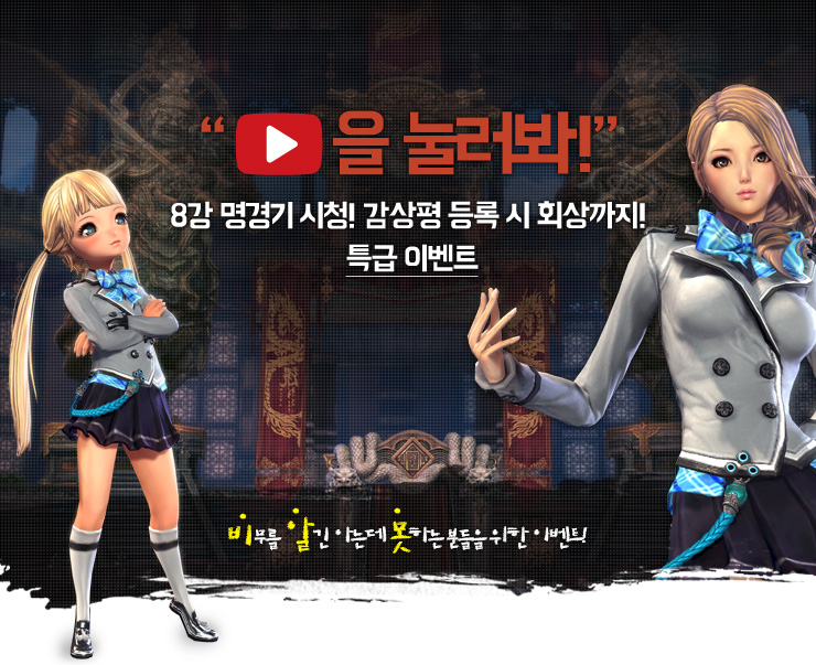 1. 이벤트 기간 동안 <블소 토너먼트 시즌1> 8강 경기 영상 VOD를 감상해 보세요.