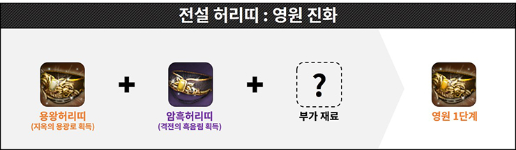 신규 영웅던전 ‘지옥의 용광로’에서 얻을 수 있는 용왕허리띠를 진화하여 획득할 수 있습니다.