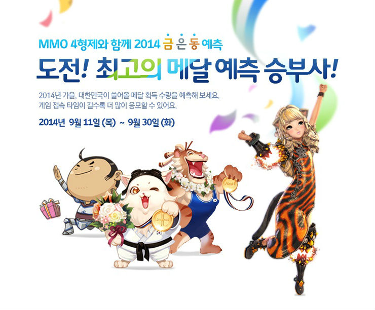 2014년 가을 대한민국 대표팀의 선전을 기원하고자 '도전! 최고의 메달 예측 승부사!' 이벤트를 마련했습니다.