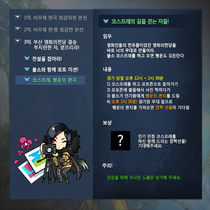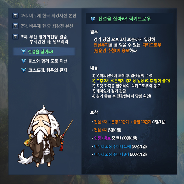 다양한 현장 이벤트와 함께 즐거운 비무제 관람이 되시길 바랍니다.