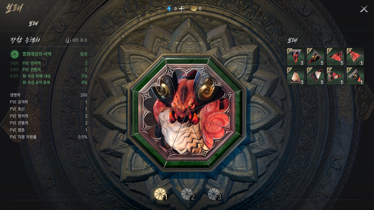 수라의 기운 | X/X/O | 경험치 획득량 +30%, 방어력 +5, 호신 +3, 속성 피해 내성 +20%, 통제 저항률 +3%, PVP 방어력 +3 (지속 시간 1시간) |