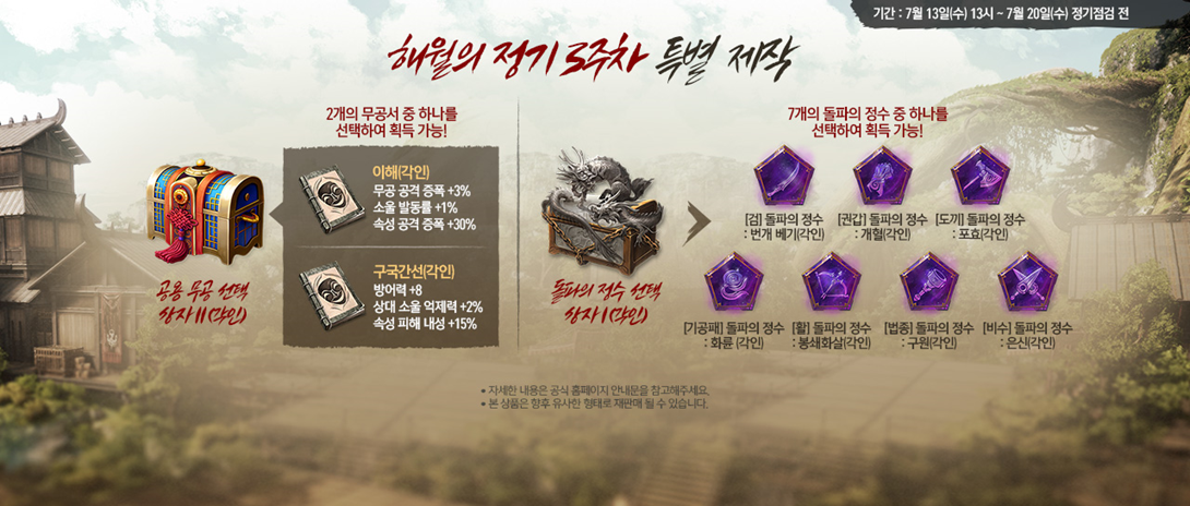 - 판매 기간 중 해월의 정기를 활용하여 제작 가능한 아이템 리스트 및 수량은 변동될 수 있습니다.