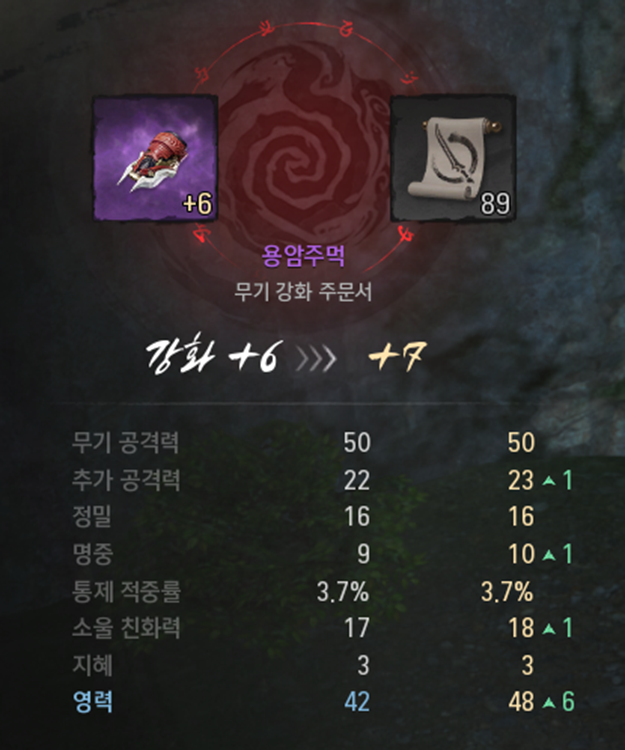 - 무기 강화 시 영력의 변화량이 표시되도록 개선되었습니다.