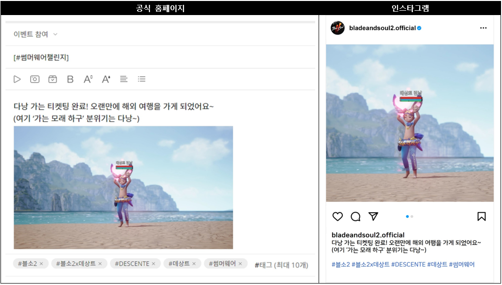 ※ 인스타그램 필수 해시태그: #블소2 #블소2x데상트 #DESCENTE #데상트 #썸머다이브