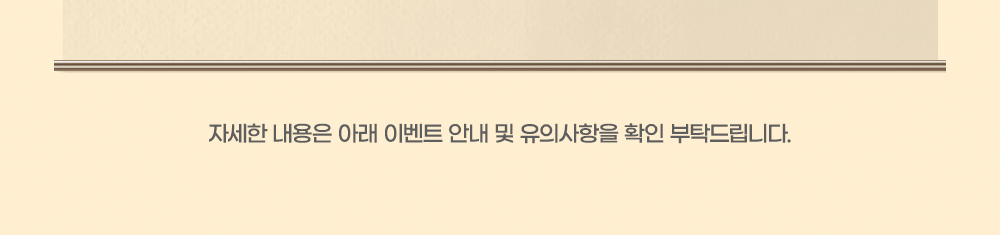- 내부 사정에 따라 이벤트 일정 및 보상 중 일부가 변경될 수 있습니다.