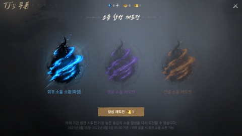 > 소울 목록과 컬랙션 버튼, 능력치 변경 버튼, 성장 버튼이 겹치는 현상이 발생되며, 전체화면으로 사용 시 버튼 사용이 가능합니다.