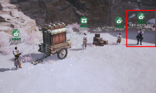 - 이벤트 시작 30분 전부터 ‘뒤틀린 유적지’ 잡화상인 옆 <방랑하는 뒤틀린 유적지의 조각사>가 등장합니다.