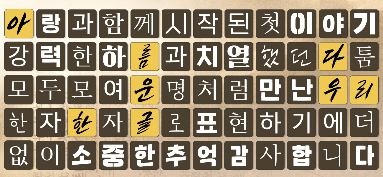 여러 가지 글자가 나열되어 있는 낱말판에서 블레이드 & 소울 2 공식 서체만을 찾아