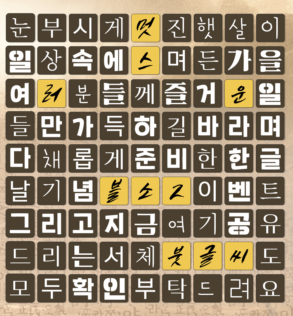 한글날을 더욱더 즐겁게 만들기 위해 블레이드 & 소울 2 공식 서체를 찾는 퀴즈를 준비했다냥~!